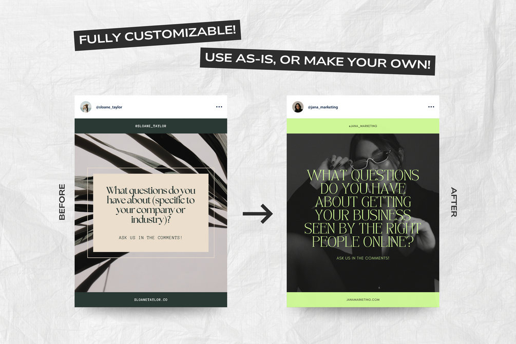 Perfect for business owners, influencers, or anyone who wants to create scroll-stopping content, these templates are customizable with your own colors, fonts, and images. Use them as-is or tweak them to fit your brand vibe. If you use Canva Pro, you can also resize them in just a click.